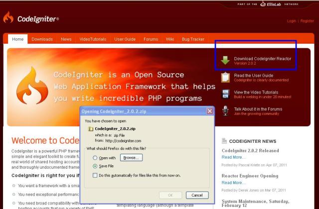 Di sini saya kongsikan bersama bagaimana pemasangan atau installasi CodeIgniter terbaru setakat ini iaitu versi 2.0.2.